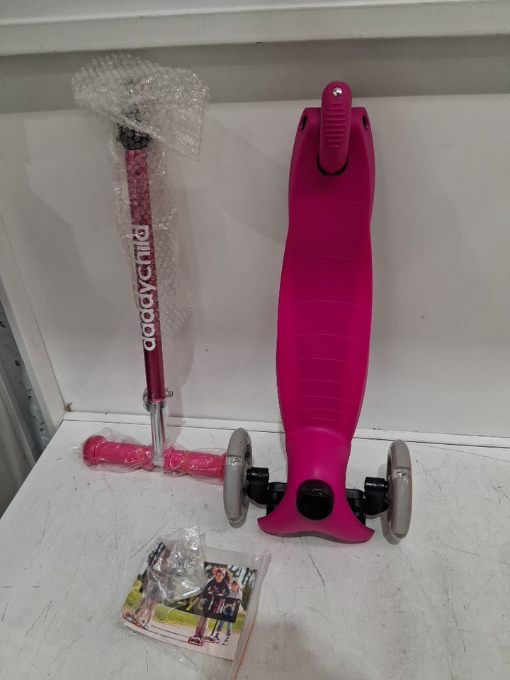 DADDYCHILD 3-WHEEL KICK SCOOTER FOR KIDS 4 HEIGHT ADJUSTMENT -25"-33" - Light up Wheels - PINK/BLACK (model: s910)