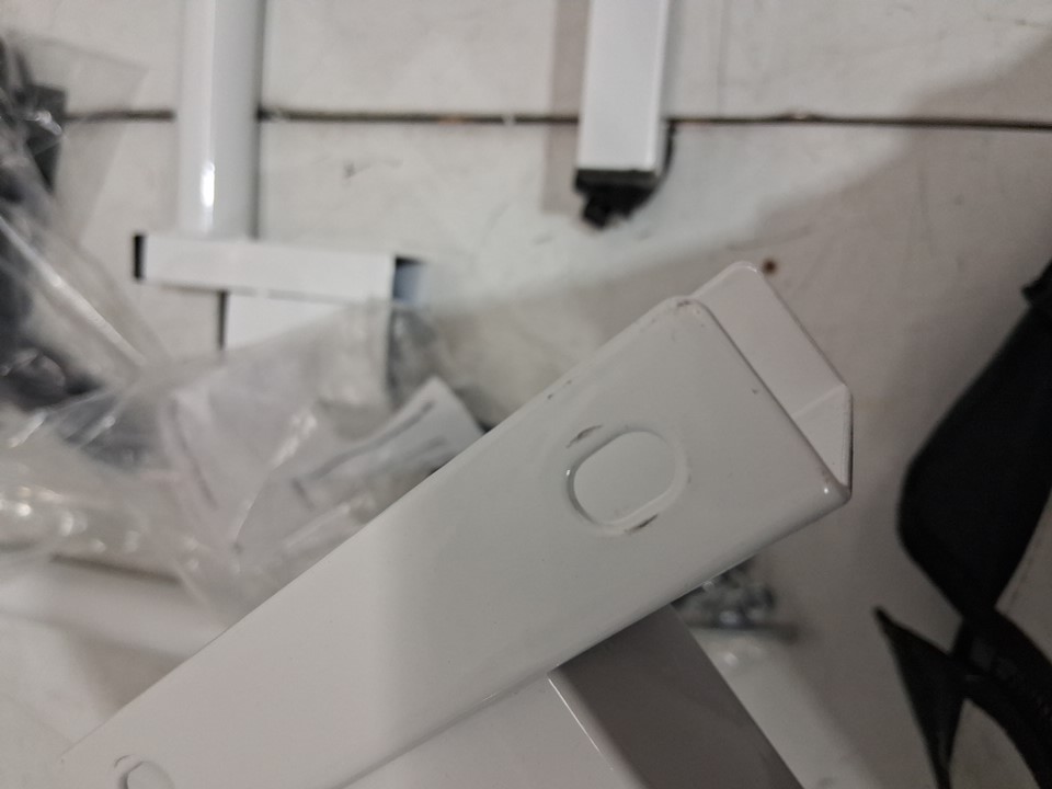 Item has a crack on tabletop, item has been previously assembled , please see photos.