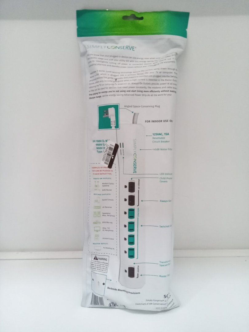 Simply Conserve Advanced Surge Protector with 7 Outlets - 1440J Protection - White