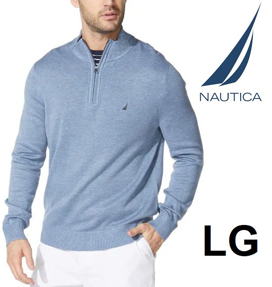 men's nautica quarter-zip pullover sweater - Large - light blue (style: 1915433)