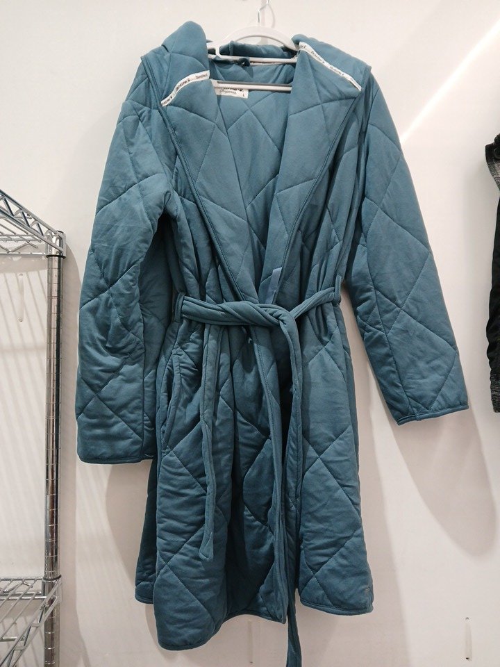 women's bear paw sleep wear quilted hooded robe house coat - large - blue