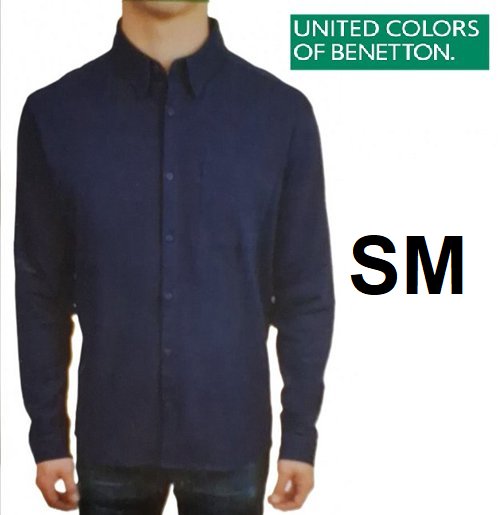 Men's United Colors of Benetton Long Sleeve Knitted Button Down Shirt - SMall - Navy Blue (Style: 1910005)
