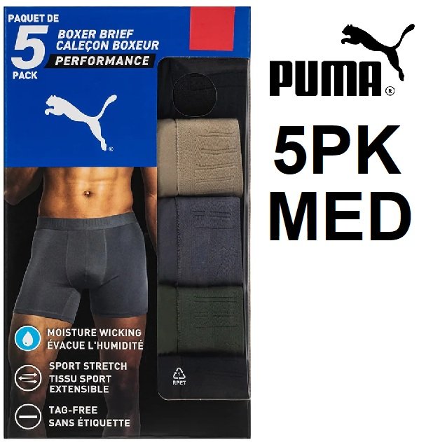 5pk men's puma moisture wicking active boxer briefs - medium - assorted (style: 4991001)
