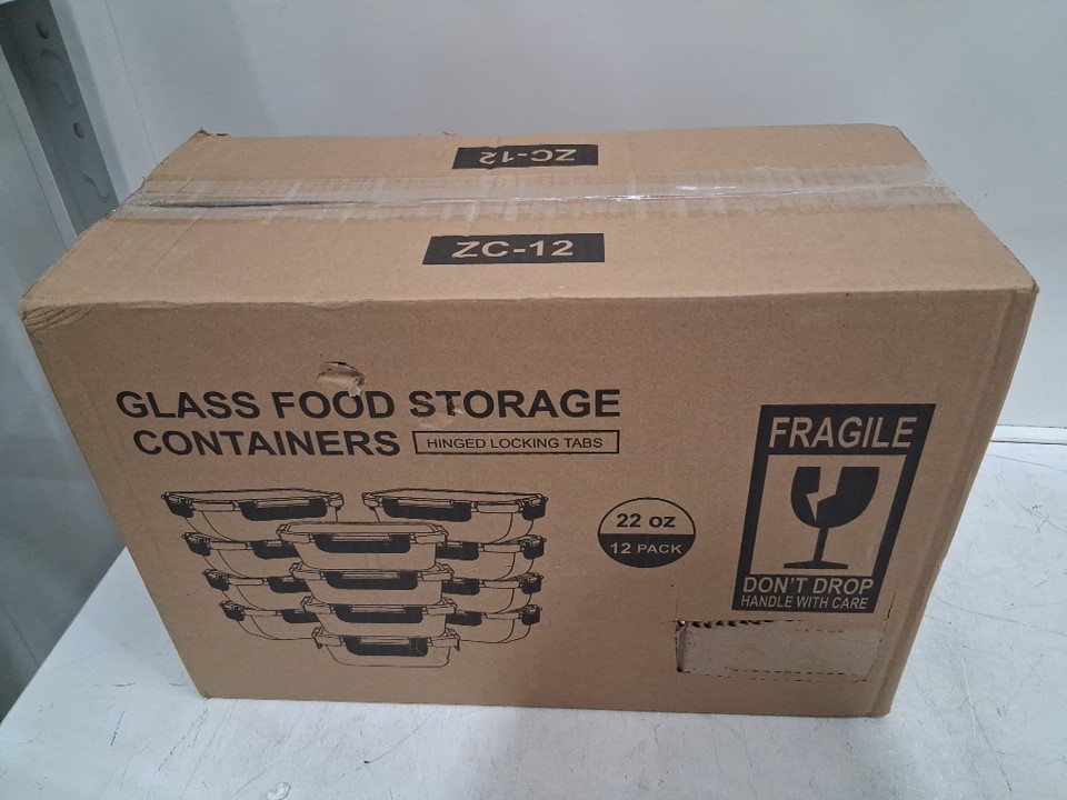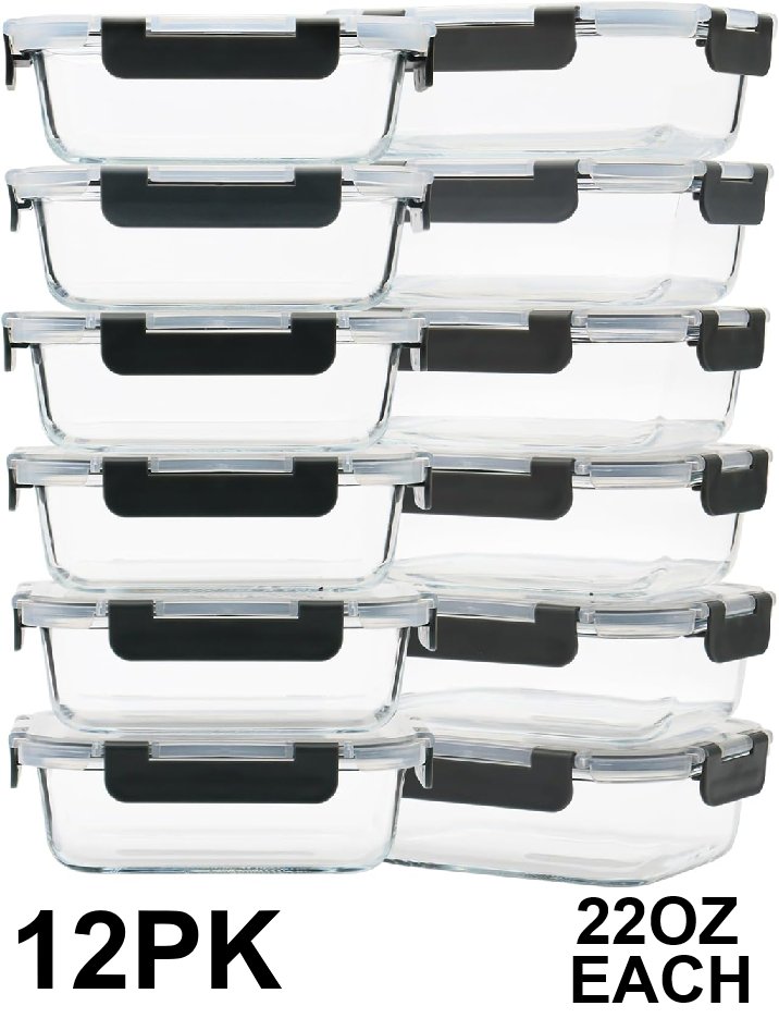 12PK GULFIN Glass Meal Prep Food Storage Containers with Lids - 22oz Each - Glass - (Model: CF650)