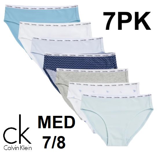 Girl's Calvin Klein Cotton Stretch Tag-Free Bikinis Underwear - MEDIUM (7/8) - Multicolour (Style: 1923753)