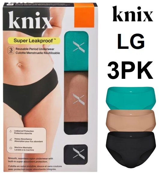 3PK WOMEN'S KNIX SUPER LEAKPROOF REUSABLE SEAMLESS PERIOD UNDERWEAR - LARGE - MULTI (MODEL: 3919432)