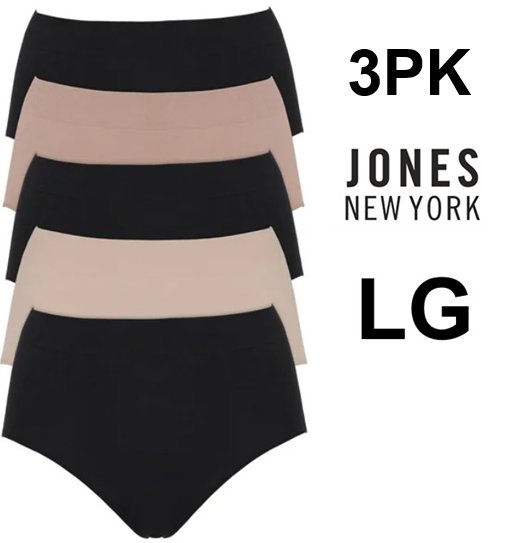5PK Women's Jones New York Silky Soft Seamless Briefs - Large - Black/Beige (Style: 1476502)