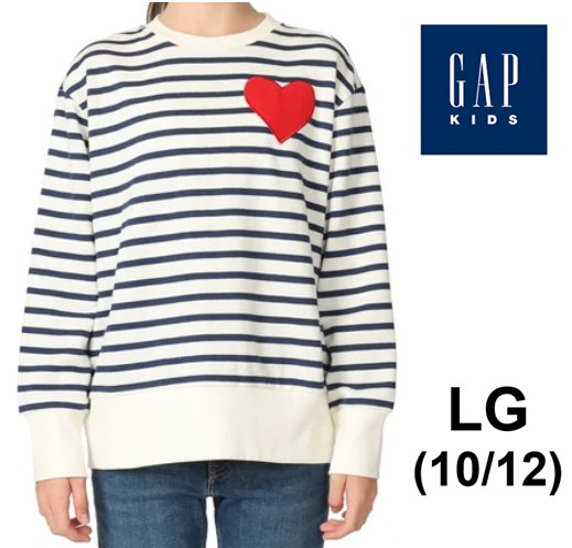GIRLS GAP KIDS STRIPED CREW SWEATSHIRT - LARGE (10/12) - NAVY/WHITE/RED (STYLE: 4432626)