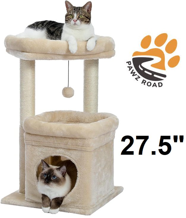 pawz road multi-level Cat Tower with Sisal-Covered Scratching Post, cat condo and large perch - 27.5" - beige (model: amt0179bg)