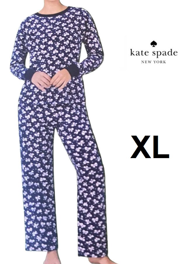 Women's Kate Spade Plush Pajama set - extra large - Navy Blue/Pink Bows (Style: 4112003)