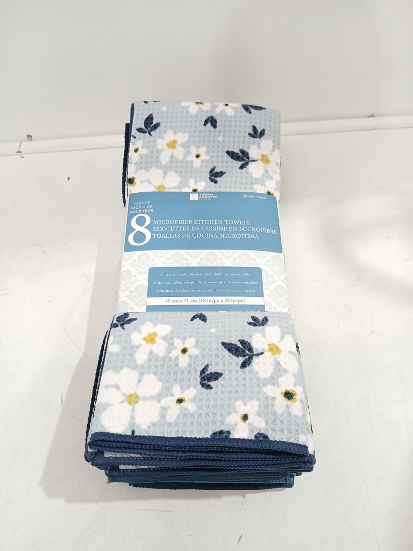 8PK Town & Country Living Microfiber Kitchen Towels - 18" X 28" - BLUE (STYLE: 1796262)