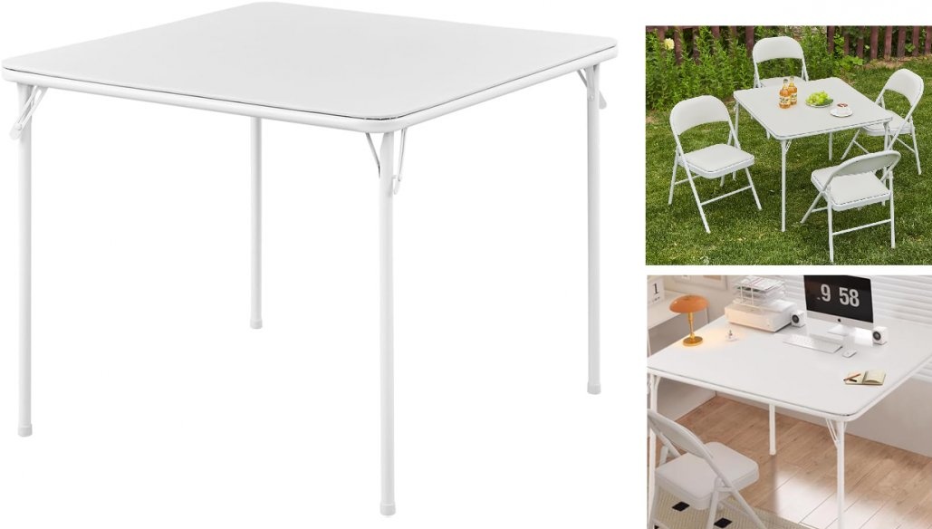 KAIHAOWIN Vinyl Upholstery Square Folding Table/Card Table with Collapsible metal Legs Portable for Indoor/Outdoor - 27.5 x 31.5" x 31.5" - White