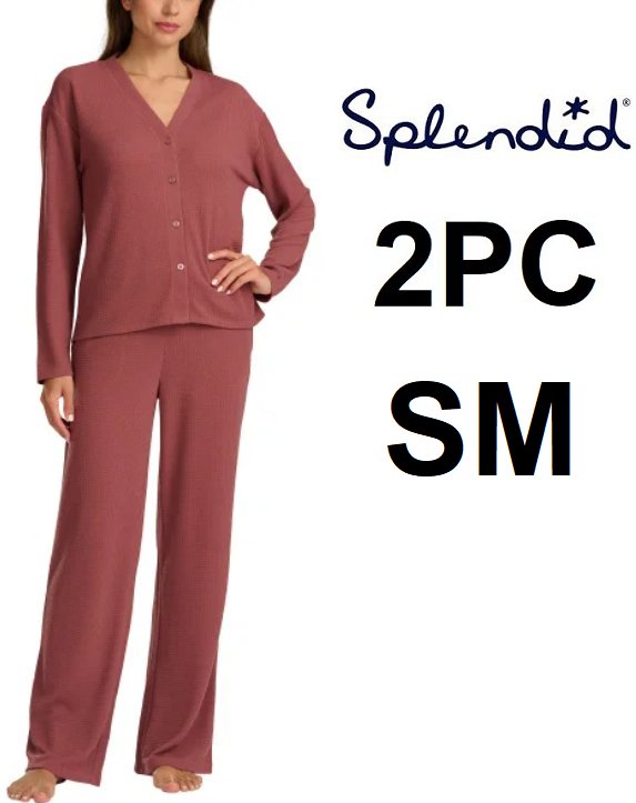 2PC Women's Splendid WIDE-leg cardigan and trouser waffle textured PAJAMA set - small - RED (STYLE: 1906295)