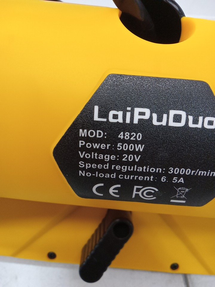 laipuduo brushless cordless snow shovel - 12.6" - 20v - yellow/black (model: 4820)
