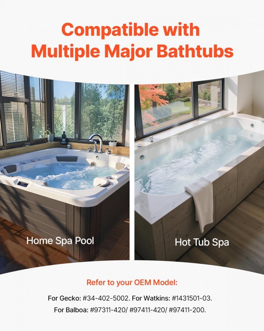 VEVOR SPA hot tub/bathtub circulation Pump - 1.5hp - 110v - 107.5 Gpm - black/silver (model: wbc150)