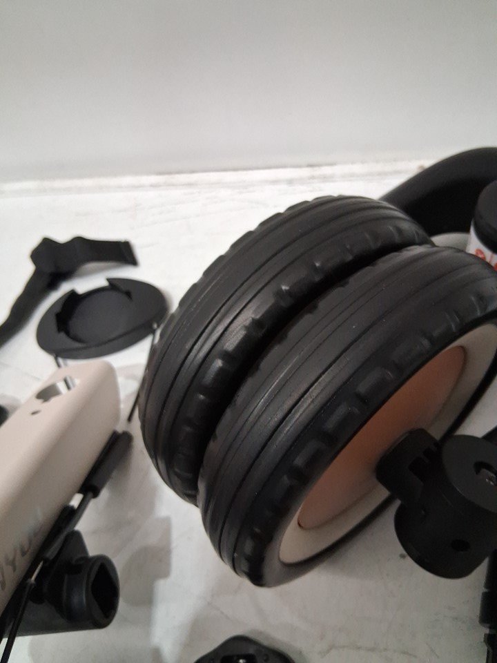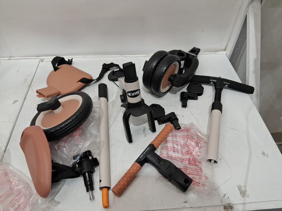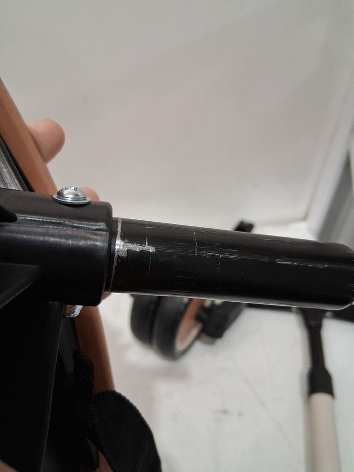 Marks and debris would suggest prior assembly. Use is unlikely due to the condition of the wheels that appear new.
