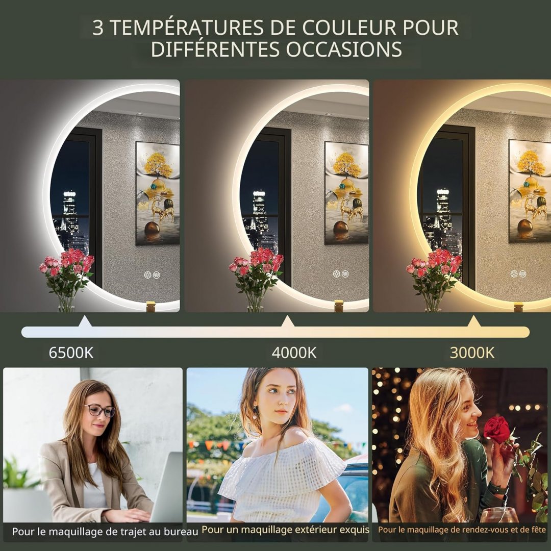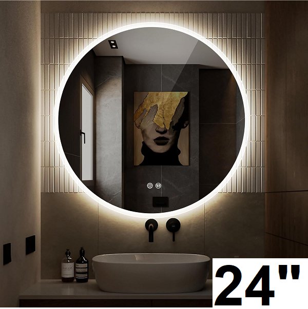 S'bagno round led anti-fog bathroom vanity wall mirror - 24"