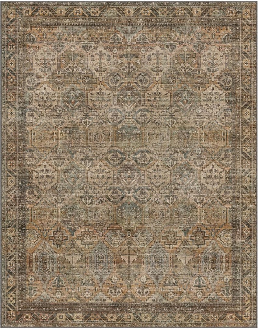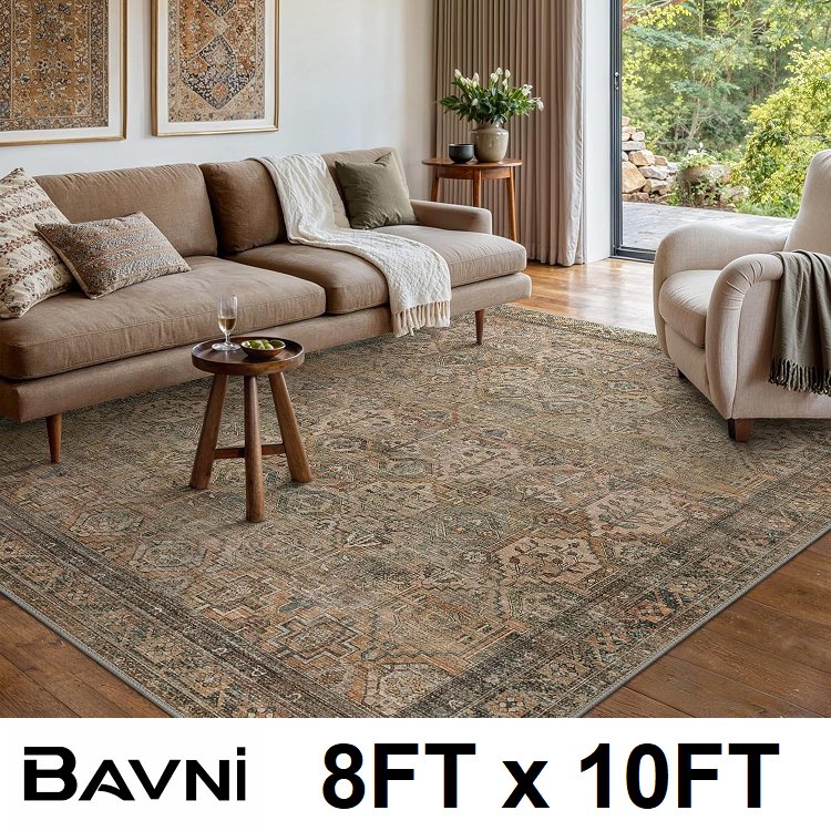 Bavni Washable Distressed Vintage Print area rug with non-slip backing - 8FT X 10FT - SEPIA