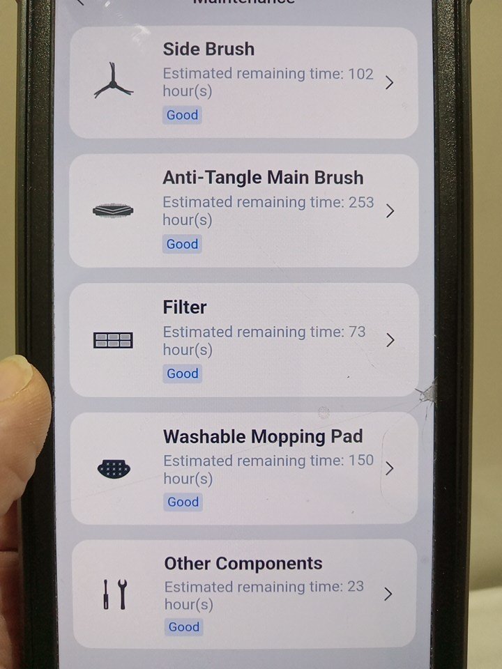 Item tested for power, charging, basic functionality, wifi/app connectivity. Unable to fully test item due to it's nature and the limitations of our network. There is some dust debris on/inside the base station and robot vacuum from previous use/testing in our warehouse. There is some light wear on the side brush, main brush and mop pad as a result from previous use. See attached photos for everything included with the item.