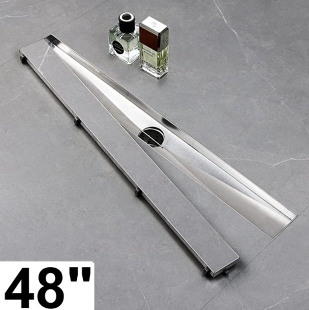 SaniteModar Linear Shower Drain with Tiled Stealth and 304 Stainless Steel Brushed Polished 2 and 1 Panel - 48" (model: lsd-t-48in)