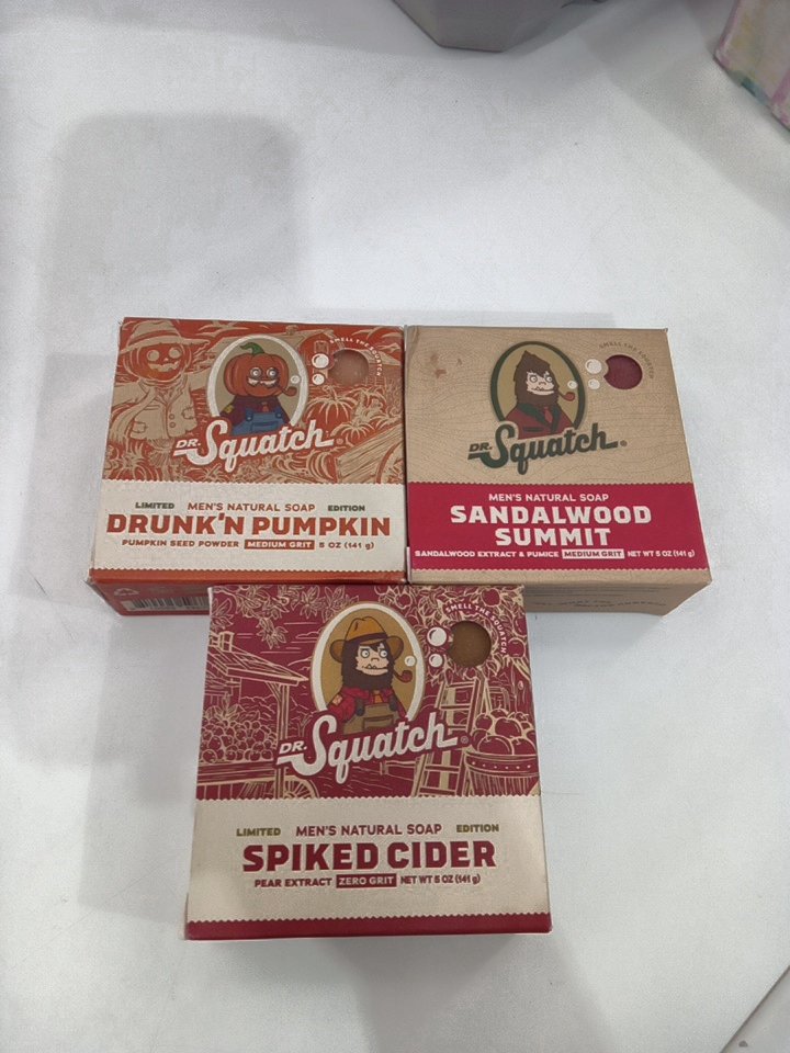 3PC MENS DR. SQUATCH natural soap - SPIKED CIDER / sandalwood summit / drunk'n pumpkin- 141g/each