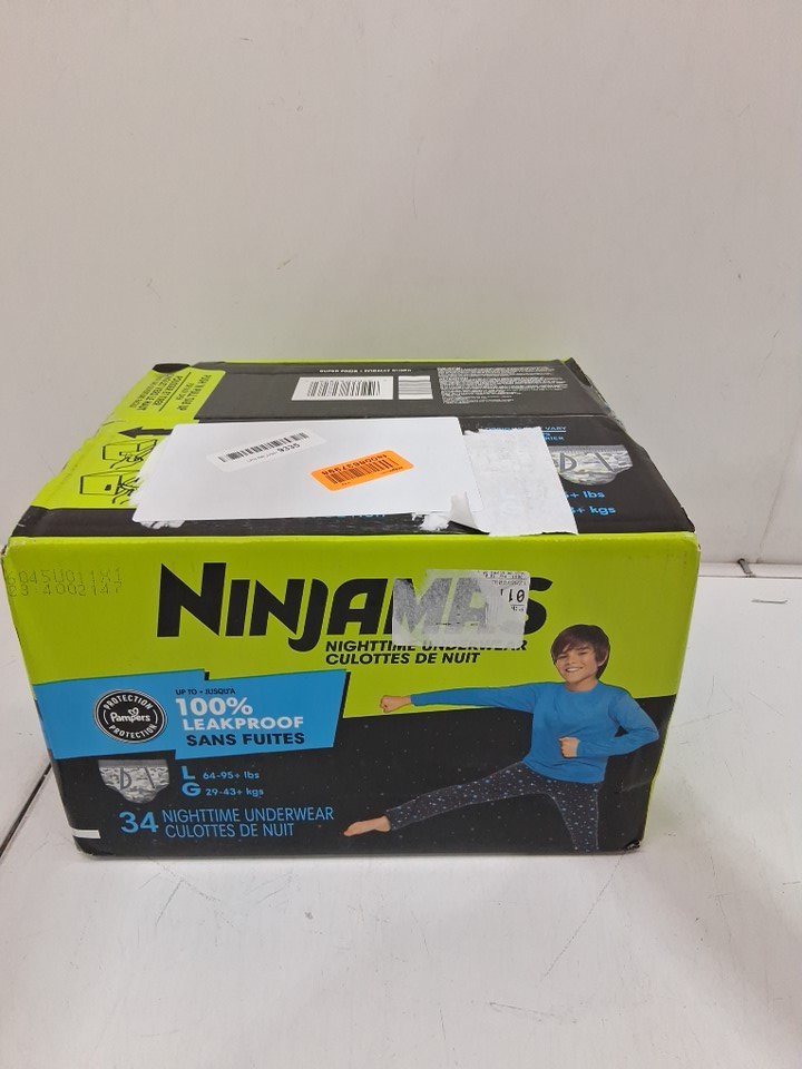 34PK UNISEX YOUTHS NINJAMAS NIGHTTIME UNDERWEAR WITH ODORMASK & ALL-NIGHT LEAK PROTECTION - LARGE - BLUE/GREEN/WHITE