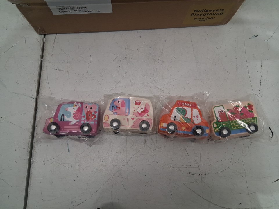 20 ASSORTED BULLSEYE'S PLAYGROUND WOODEN TOY CARS - ASSORTED COLORS
