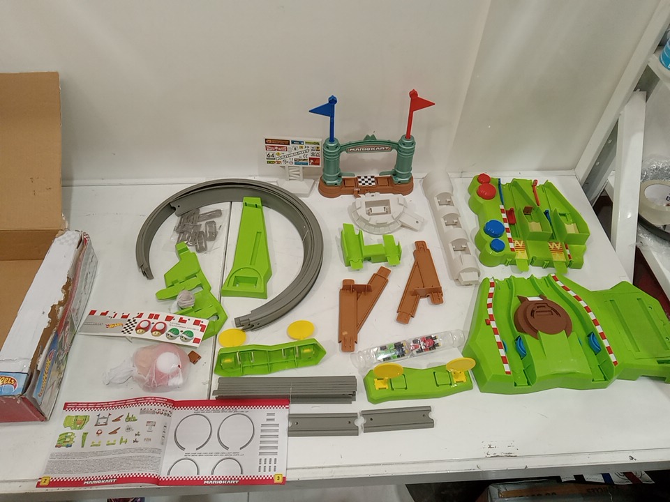 hotwheels mariokart circuit track racing set with mario & yoshi toy cars (MODEL: HFY15)