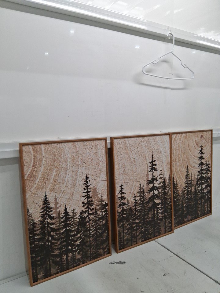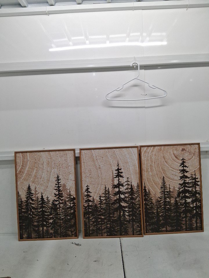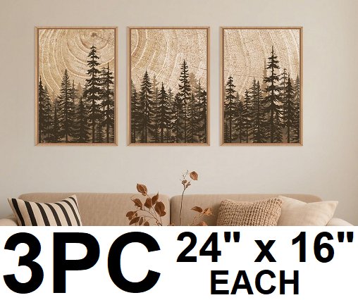 3PC Celestdeco Forest Pine Tree Framed Canvas Wall Art Set - 24" X 16" (EACH) - BROWN