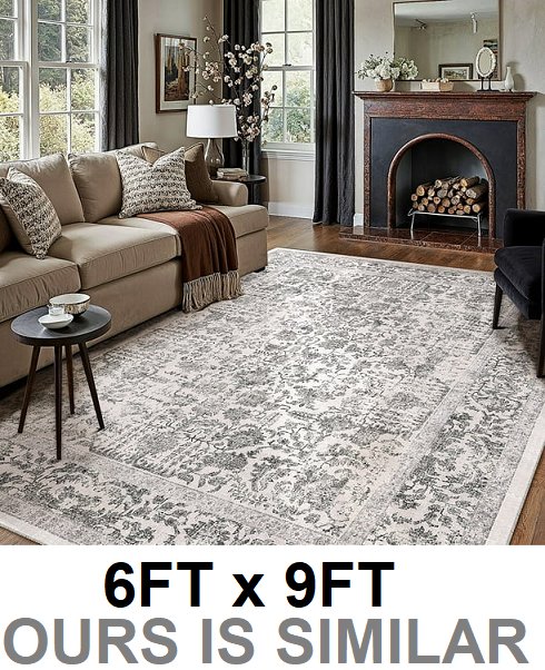 BERTHMEER SOFT VINTAGE STYLE AREA RUGS - 6FT X 9FT - GREY/WHITE
