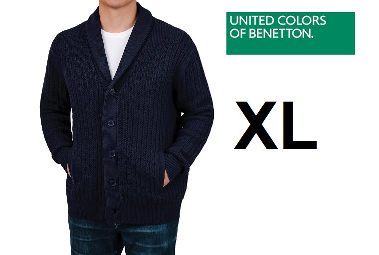 men's United Colors of Benneton Shawl Collar Knitted Cardigan - extra large - navy - (style: 1938298)