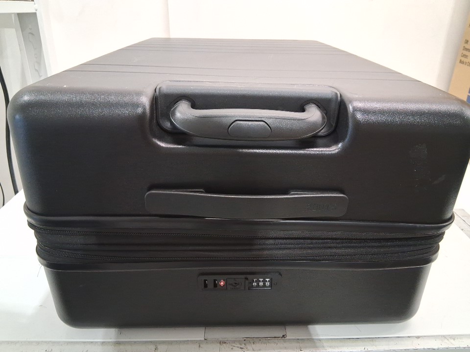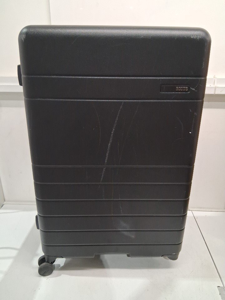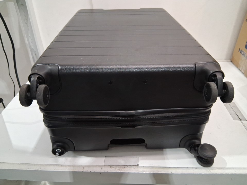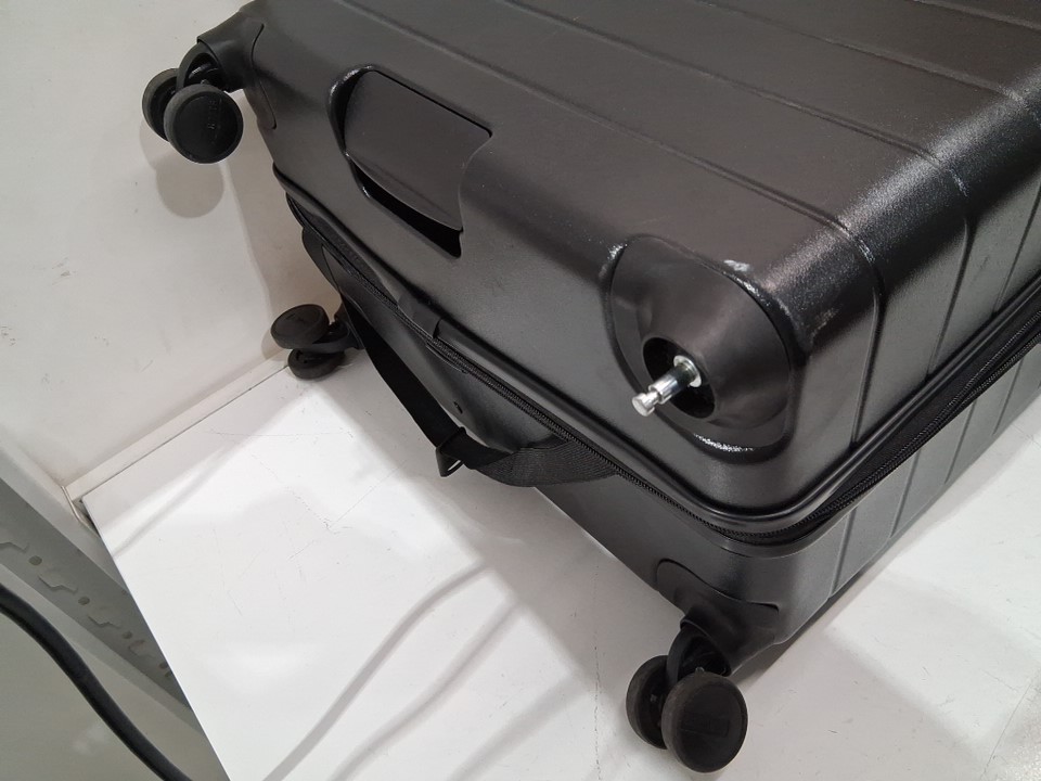 There are scratches/scuff marks on the suitcase indicating previous use. Please note that one of the wheels is missing, but it should be replaceable (see photos)