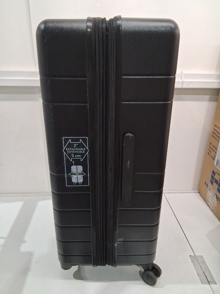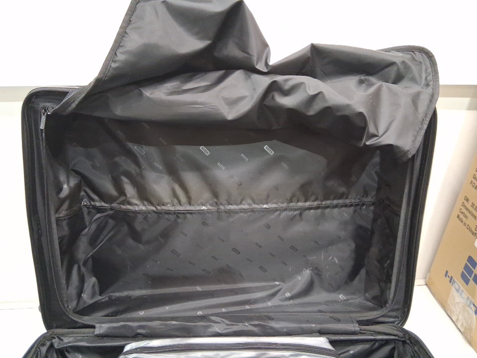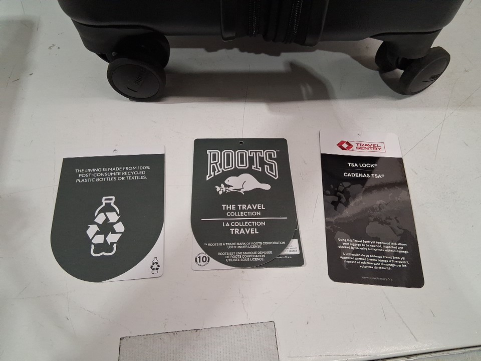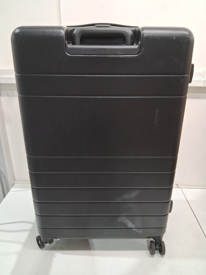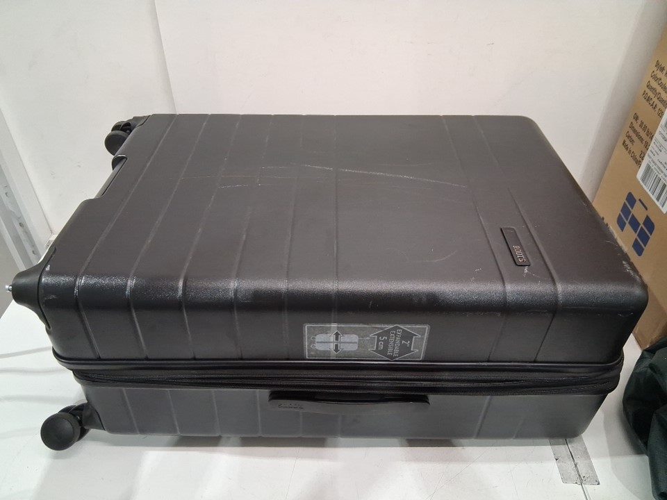 There are scratches/scuff marks on the suitcase indicating previous use. Please note that one of the wheels is missing, but it should be replaceable (see photos)