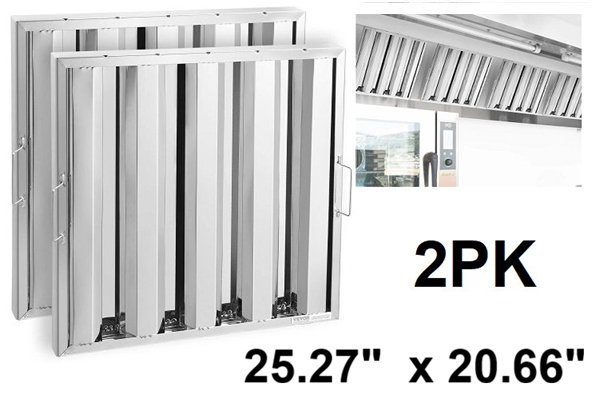 2pk Commercial RANGE fume hood filters - 25.27" x 20.66" - STAINLESS STEEL (model: hgss-004)