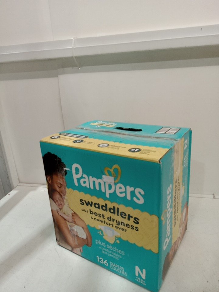 136PK PAMPERS SWADDLERS DIAPERS - NEWBORN SIZE