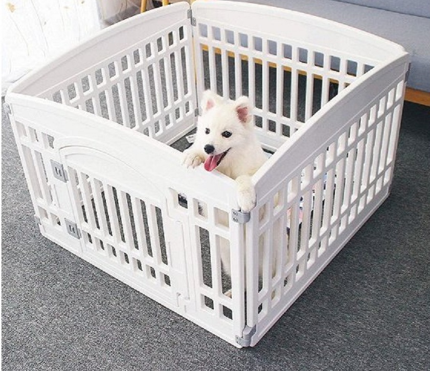 GUPAMIGA PET PLAYPEN WITH DOOR FOLDABLE GATE MADE OF HEAVY PLASTIC 4-PANELS - 33.5" x 33.5" - WHITE (MODEL: PPW-WHITE)