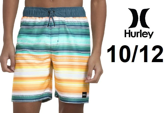 BOY'S HURLEY SWIM TRUNKS WITH LINER - 10/12 - blue/orange/grey (style: 5777321)