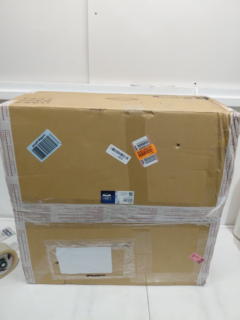 item appears to be unopened, however there is some damage on the corner.
