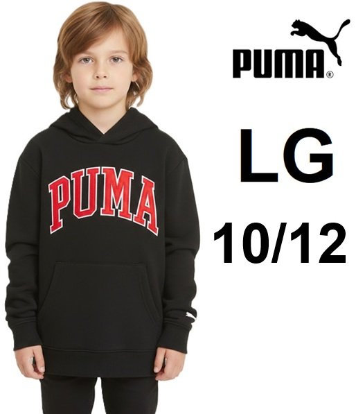 KIDS PUMA logo sweater pull-over hoodie - large (10/12) - black / red (style: 3513001)