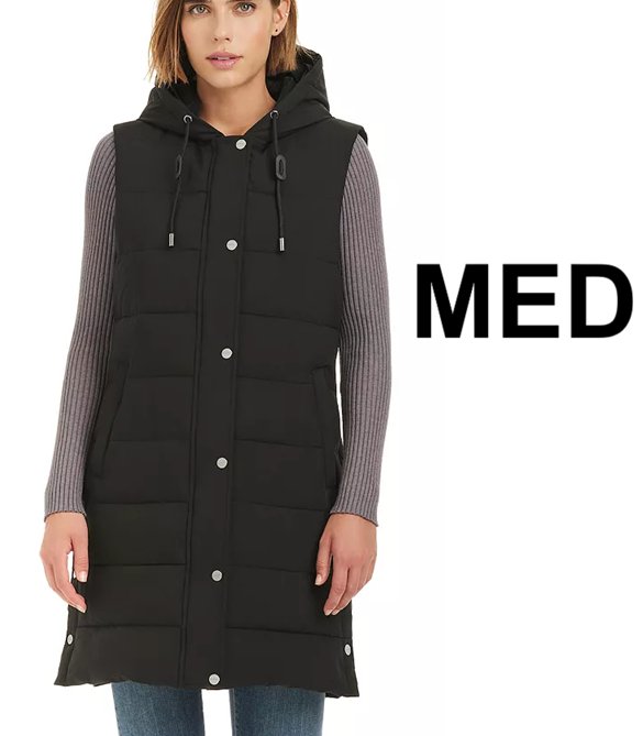 WOMENS sanctuary long hooded puffer vest - medium - black ( style : 8114001)