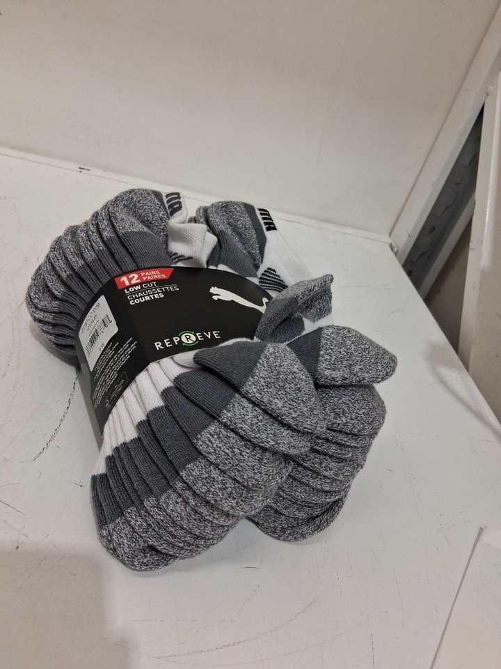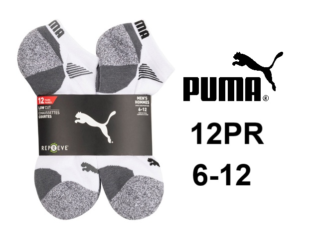12PR MEN'S PUMA LOW CUT SOCKS - 6-12 - WHITE/GREY (STYLE: 1233473)
