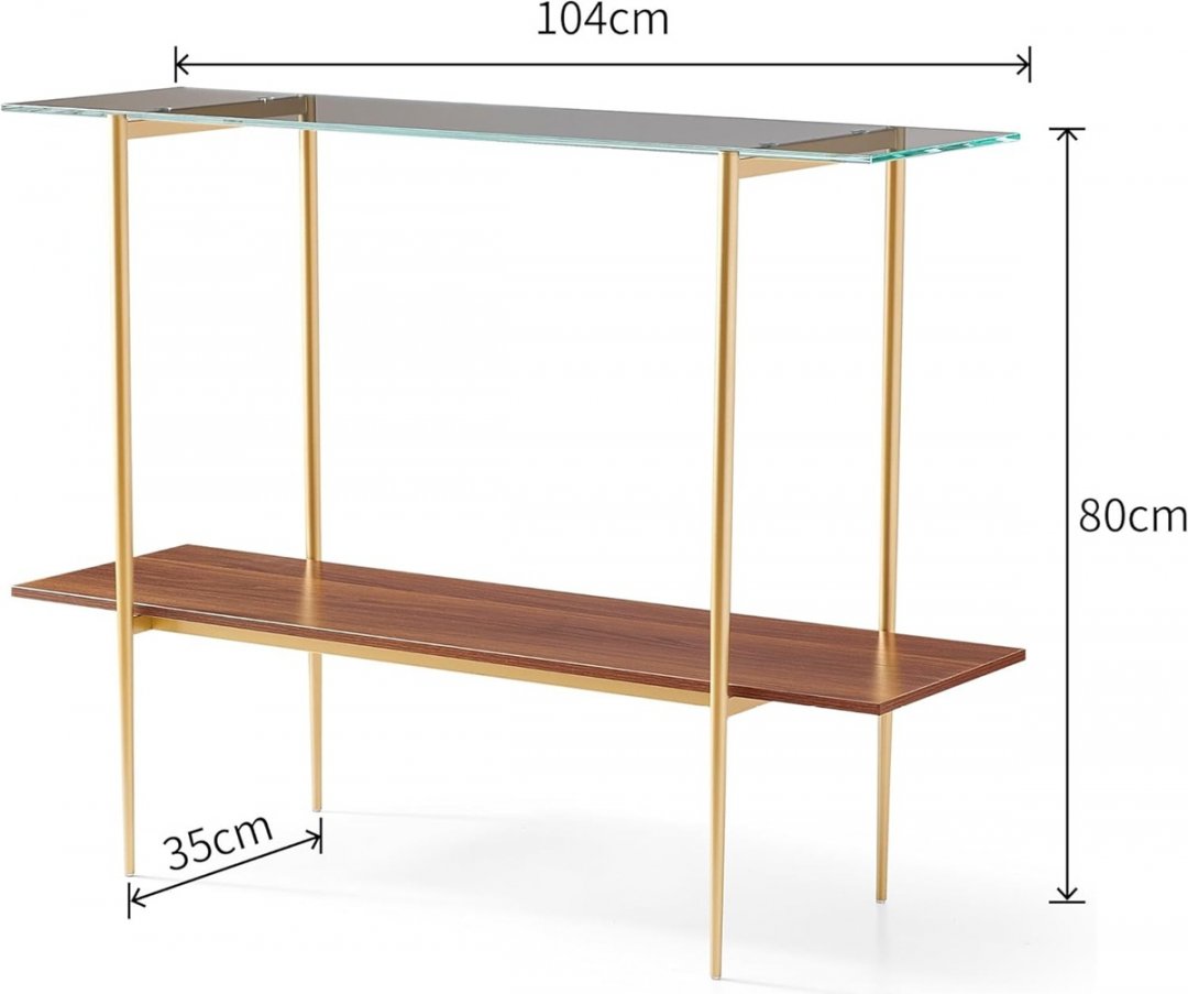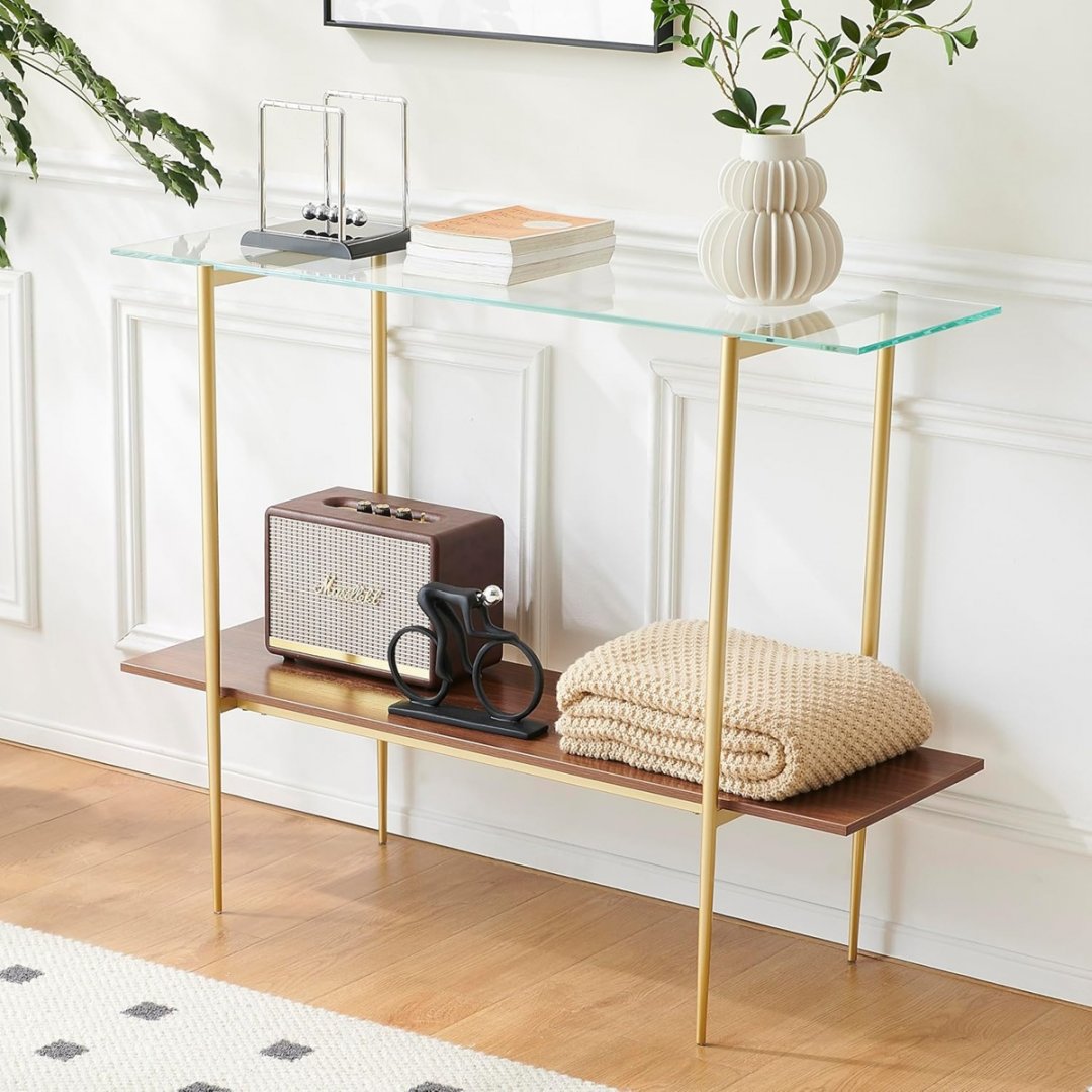 AGV Mid-Century Glass Console Table - 41" x 32" x 14" - Gold/Wood (Model: 202401)