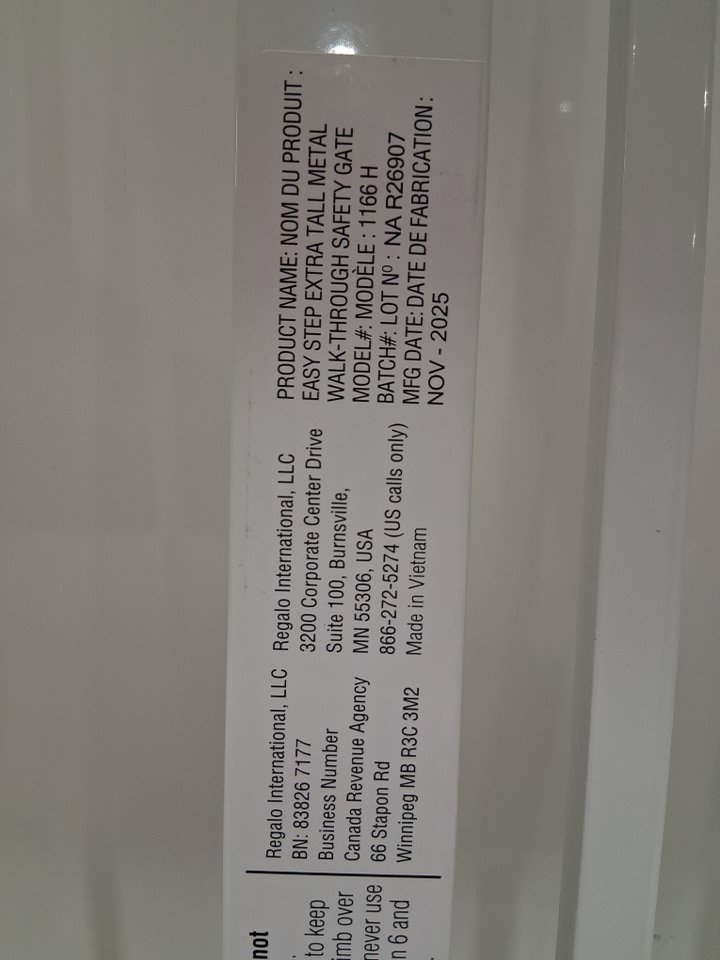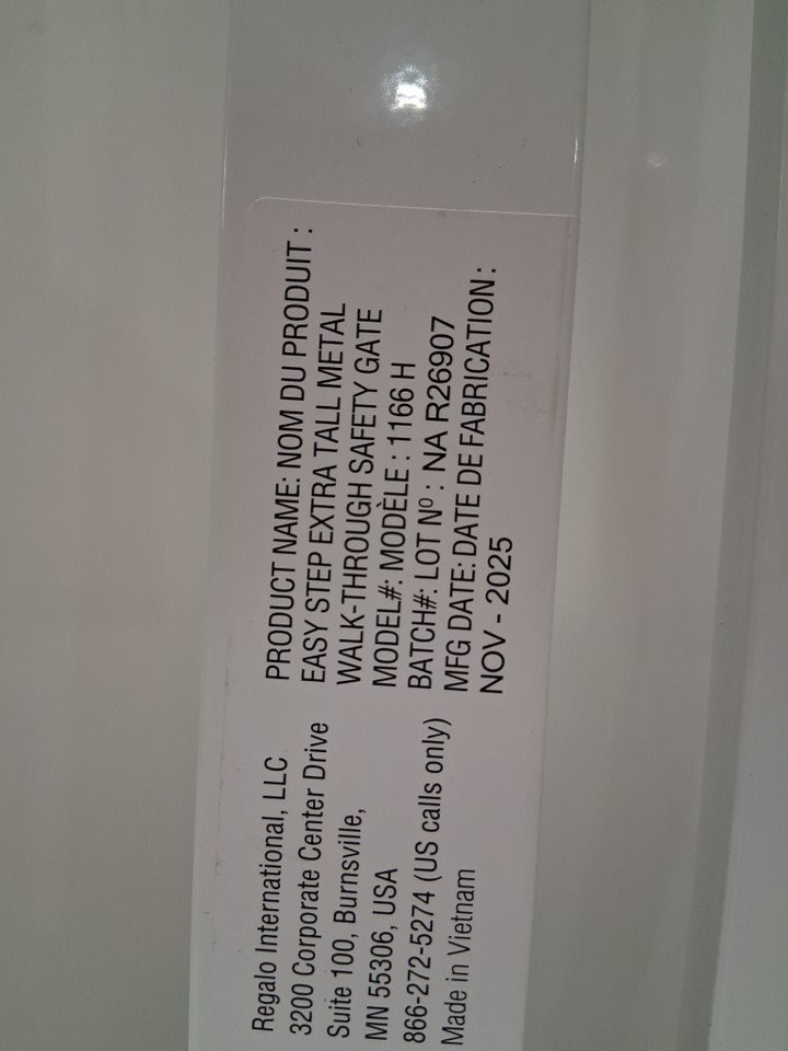 REGALO EASY STEP extra tall WALK-THRU METAL SAFETY GATE - 36" x 29" to 36.5" - WHITE (MODEL: 1166HDS)