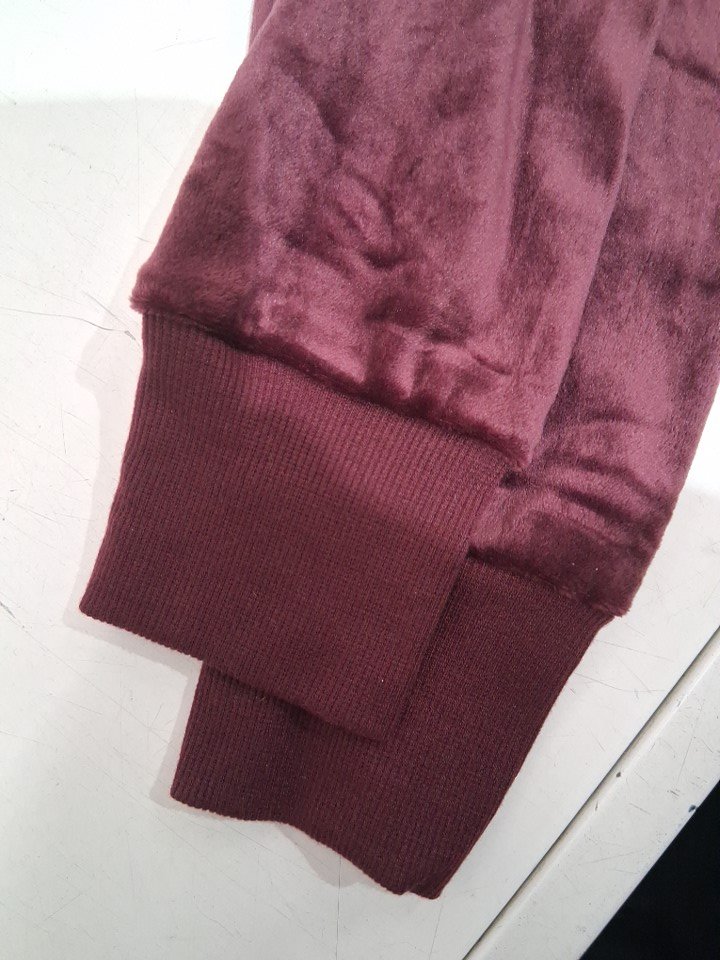 2PC VELOUR black bow HOODIE & JOGGER LOUNGE SET - SMALL - burgundy (MODEL: 1913881)