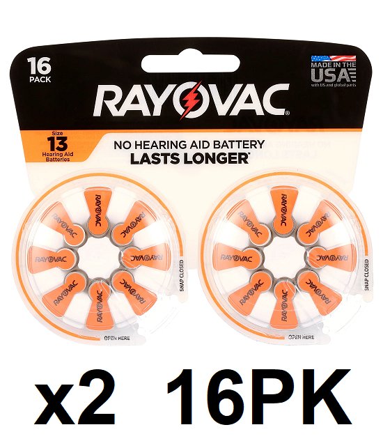 2 (16PK) RAYOVAC Zinc-Air hearing Aid Battery - size 13 - 1.4v