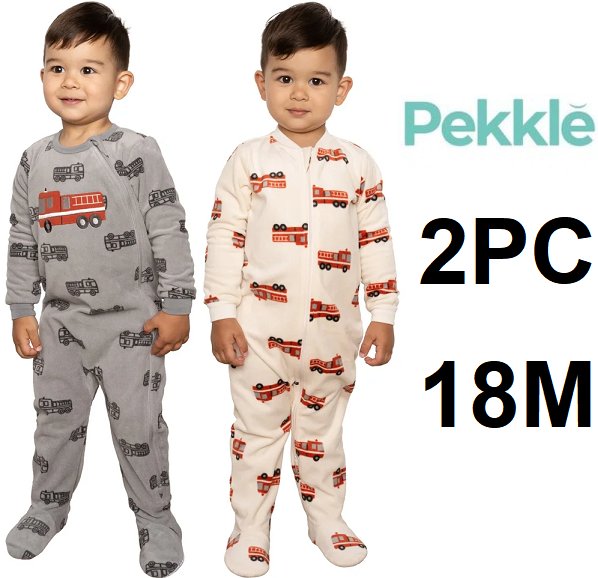 2pk kid's Pekkle FIRETRUCKS Fleece Sleeper SET - Size 18m - white/grey (Style: 9001234)