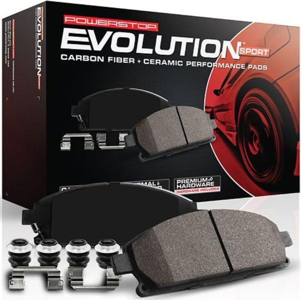 Power Stop Evolution Sport Carbon Fiber Infused Ceramic Brake Pads with Hardware (model: Z23-721)