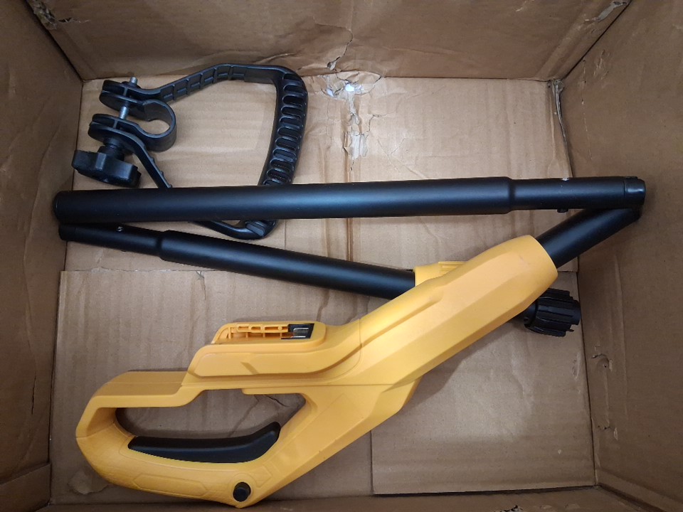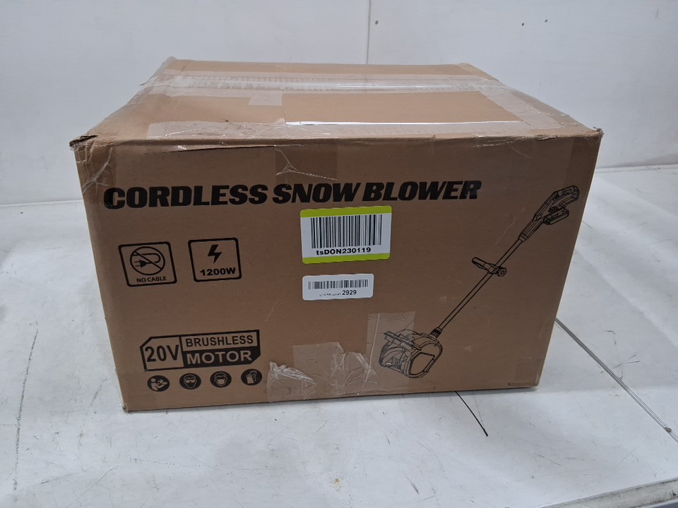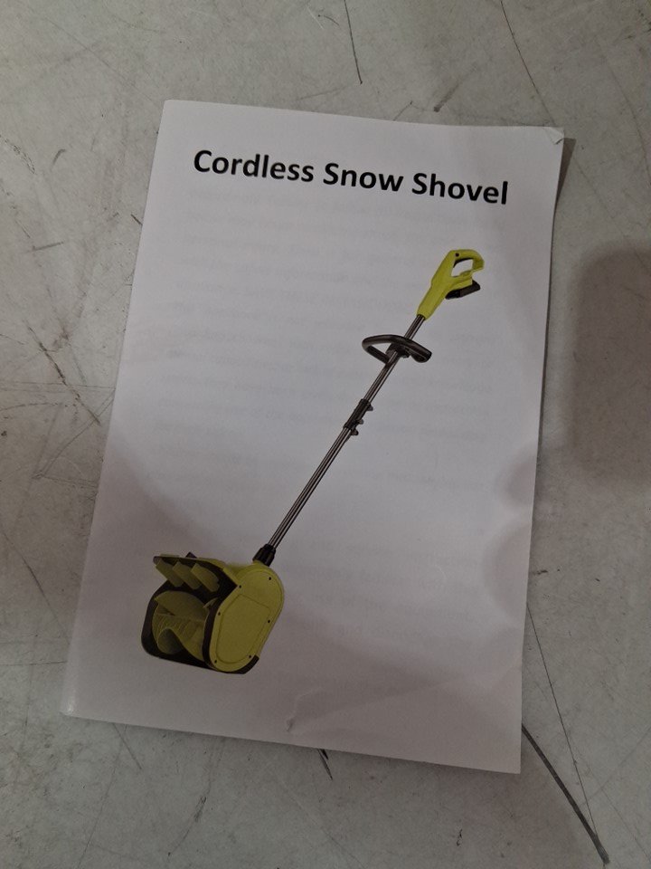 There are some stains on the exterior and some dirt on the inside of the thrower indicating some prior use, but otherwise appears to be in good condition with no visible damage - see photos. As mentioned in the title, there is no battery included with this snow thrower, so customer will need to provide their own.