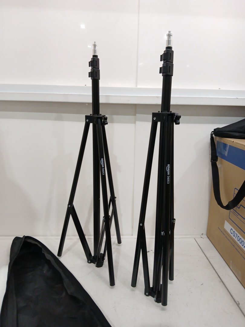 2PK AMAZONBASICS ALUMINUM LIGHT PHOTOGRAPHY TRIPOD STYLE STAND WITH CASE - 2.8FT - 7FT - BLACK (Model: B074VMTP68)
