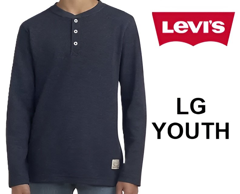 Boy's Levi's Thermal Henley Long Sleeve Tee - large (10/12) - navy blue (STYLE:92M515)